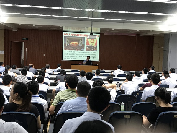 為深入學習宣傳貫徹習近平新時代中國特色社會主義思想,全面貫徹落實黨的十九大和十九屆二中、三中全會精神,根據集團公司黨委關于全體黨員集中學習宣傳貫徹實施憲法的要求,6月30日, 在中國共產黨建黨97周年之際,由公司黨委組織部主辦的東華黨校(東華大學)大講堂第四講——“解讀憲法修正案”在公司順利開講。